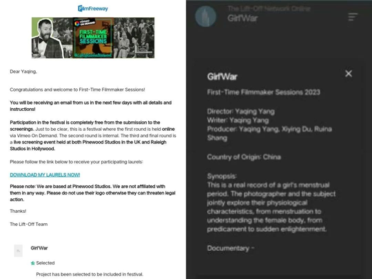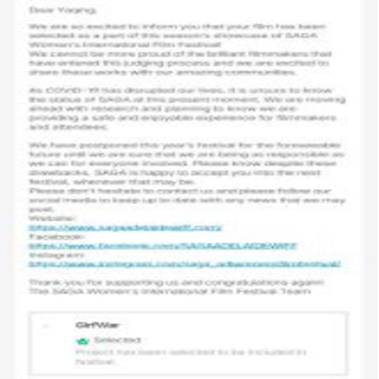 SAGA WIFF 女性国际电影节官方入围入围邮件
