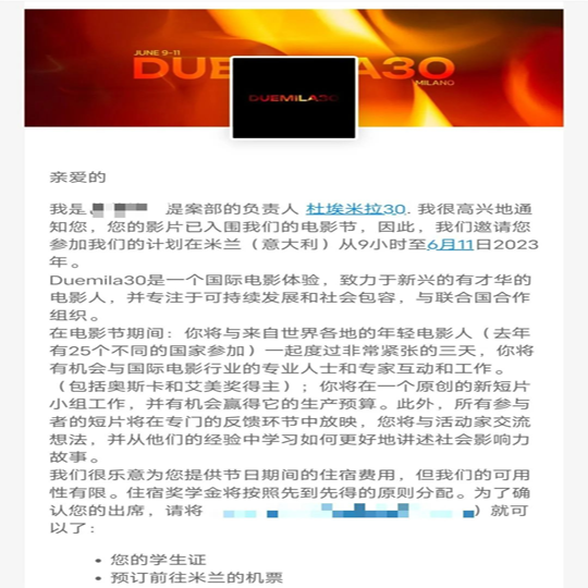 意大利米兰杜米拉30电影节 (Duemila30) 官方入围