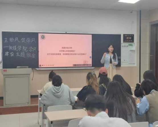 4月9日,学院各班级以“正班风,促学风”为主题召开学风建设主题教育班会。班会全面学习了《传媒学院“教学质量提升月”学风建设专项行动实施方案》文件要求,切实围绕如何加强班级班风建设、促进学风成效、营造浓厚氛围等方面展开,重点强调了到课率、前三排就座率、上课纪律、课堂质量等基础性要求,积极选树班级榜样力量,发挥引领帮扶作用,定期开展英语角、读书分享、笔记展评、竞赛宣讲等常态化活动,端正学习态度、培养学习兴趣、提高学习质量,通过正班风,达到促学风的目标和作用。