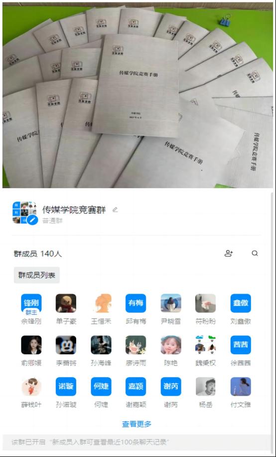 为进一步培养学生创新精神和实践能力,不断强化学科竞赛在学风建设中的引领作用,坚持以“保障重点、鼓励先进”为原则,以激发学生学习兴趣,培育学生创新思维、团队精神和解决实际问题的能力为着力点,结合历年学科竞赛赛制赛事,联合学科带头人、班主任、专业教师研究汇编了《传媒学院学科竞赛手册》,发放辅导员和学生手中,加强对学科竞赛的全面了解,激励学生积极参加学科竞赛,提升核心竞争力,力争探索出一条培养提升学生创新能力的可持续发展道路。同时,为精准培养学科竞赛种子选手,学院组建了学科竞赛群140余人,定期发布学科竞赛有关通知,并开展交流讨论。