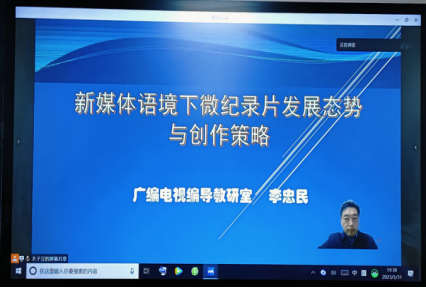 5月31日,传媒学院“新媒体语境下微纪录片发展态势与创作策略”专题讲座举行。。传媒学院广播电视编导教研室李忠民教授主讲,全体师生通过在线直播方式聆听。