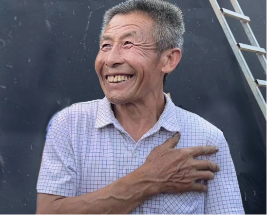 在这里,我们采访到了一位当地的老人,常永喜。这位60岁农民的身材并不高大,手臂上青筋布满,但由于多年在田间劳作,他的皮肤被太阳晒得黝黑,似乎和土地融为了一体。他的脸上布满了深深浅浅的皱纹,显得粗糙暗沉。他的眼睛深陷在眼眶里,但依然炯炯有神,透着一股坚毅与执着。他穿着一件白色的格子的衬衫和一条黑色的长裤,黄土和灰尘附着在他的鞋上,脏但不旧。他的双手粗糙暗沉,青筋暴起。他的指甲边缘还沾着泥土,黑色顺着他的指甲,蔓延在每一条纹路上,日复一日的劳作在常永喜的手上留下了难以磨灭的痕迹,