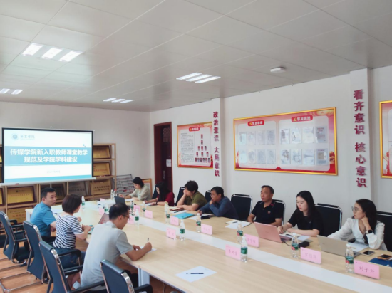 为全面落实“立德树人”根本任务,积极贯彻学校本科教育教学会议精神,全方位、立体化、深层次加强学院自身建设,打造一支符合时代发展、符合教育规律、符合高质量发展需求的过硬教师队伍,8月24日上午,传媒学院在7-208会议室举行“新老传帮带、经验共分享、交流促成长” 新入职教师课堂教学规范及学院学科建设专项会议。副院长李金山、李政、教务科科长朱先雷、熊敬忠、王明光教授、于鸿雁副教授、各教研室青年教师代表及新入职教师、辅导员参加。会议由传媒学院院长张西静主持。
