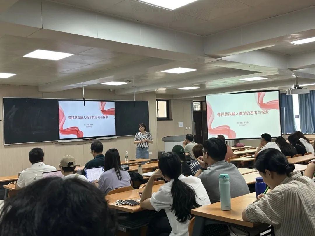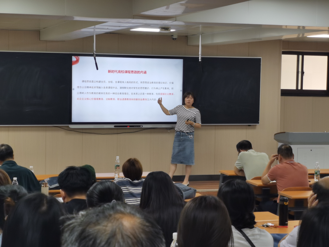 张西静院长主要围绕课程思政建设的政策背景,如何认识课程思政,课程思政融入教育教学的实践三个方面进行阐述,她以习近平总书记讲话为引,以课程思政与“三全育人”人才培养体系相结合,结合校级课程思政示范课《传播学概论》为例,从宏观、中观、微观三个层面讲述了课程思政育人的目标,在课程教学中通过运用案例式、议题式、体验式、项目式等多种教学方法,融合应用现代信息技术,推进基于真实情境的教学;积极采用小组学习、问题解析、学生讲述等课堂形式,注重用好学生身边可知可感的生动事例和典型人物的重要性,引导学生从专业角度思考道德和社会价值,充分调动了学生参与课程的积极性与主动性,增强学生的参与感与学习兴趣。在课程教学内容体系上,按照传播学的宏观研究——传播学的要素研究——传播学的交叉研究这一思路,优化重构教学内容体系,达到依托课堂主渠道,在讲好中国故事中育大德。下好网络“先手棋”,在传播中国声音中正公德。学生在哪里,德性实践就延伸到哪里;德性实践载体在哪里,学生德性教育就搬到哪里的教学目标。