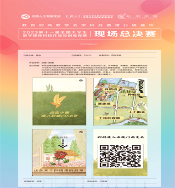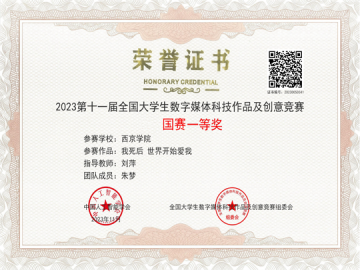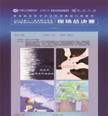 大赛启动以来,共有来自全国各地,大概11700个项目,经过多轮激烈角逐,以及来自国内外专业评委的实时评分,最终我校朱梦同学提交反对网络暴力主题项目《我死后,世界开始爱我》,作品因其较高的立意与独特的呈现方式斩获本科组其他类别赛道国赛一等奖。卢香瑞同学的作品《后陡门的夏》,因基于乡村振兴“新农人”为创作背景以及较丰富的交互设计同样深受现场评委老师的好评,荣获本科组其他类别赛道国赛二等奖。
