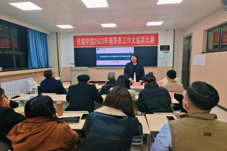 12月6日下午,传媒学院在1116教室举行2023年辅导员工作大练兵比赛,10位辅导员逐一进行主题班会展示,比赛由教育教学质量监督处学工杨恩科督导,大学生发展与服务中心马璐主任,发展科吴玺科长,新闻学教研室侯大为教师担任评审。