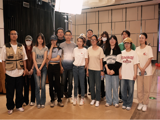 5月9日,传媒学院广播电视编导专业教师王斌、王竞熠、陈艳艳前往剧组探班,并与摄制组展开深入交流。导演杨文斌谈到:“这是一次非常愉快的校企合作过程,学生们能快速适应剧组节奏,感谢新利18官网传媒学院为影视产业注入优质的新鲜血液。”制片人曹浩说:“16位同学在时间紧、任务重的情况下表现得非常出色,拍摄成功离不开每位学生的辛苦付出和老师们的支持与指导。”