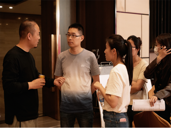 三位教师与剧组学生及导演进行深入交流,广播电视编导教教研室主任王斌表示,“通过校企合作的建立,共同打造一个能够为学生提供理论联系实践、提升专业技能,同时拓展视野、培养综合素质的综合平台,提高实践能力。更重要的是将三门课程的改革创新在实践中拓展新思路”。院长张西静谈到,师生们以极高的专业性和敬业精神投入到这项工作中,从剧本的打磨、到场景的布置、摄影的技巧,每一个环节都精益求精,力求达到完美的效果。他们对待工作的态度,对待每一个细节都充满热爱,追求做透、准确、创新,这是对“匠心精神+艺术素养”的人才培养特色深刻实践和体现。短剧发展迅猛,契合当下受众的需求,也是未来影视和互联网发展的一个重要趋势,学院近年来有意引导师生们从乡村文旅、历史文化、非遗文化、城市特色等多个创作方向出发,实现“短剧”+“文旅”两个热门赛道互相促进,最终达到“1+1>2”的效果。