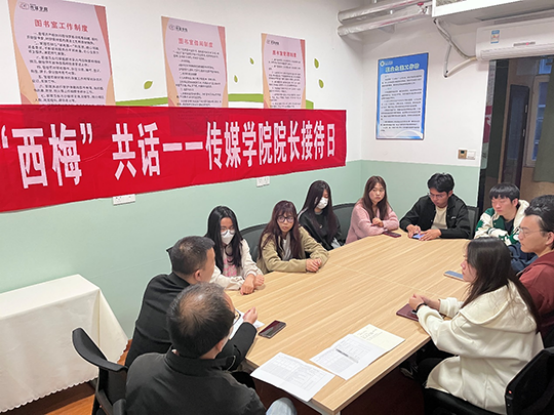 为全面加强和积极落实“教育教学质量提升月”工作,切实提升学风建设成果成效,不断营造浓厚的学习氛围,有效帮助学生养成良好的学习自觉性。4月29日,在传媒学院17号公寓楼“一站式”学生社区举行院长接待日。副院长李金山、李政,学生科科长余锋刚及2023及学生代表参加。