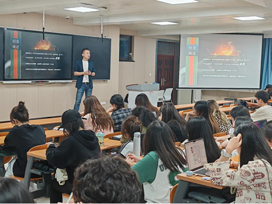 首先,赵孟奎老师为同学们阐释了何为创新创意,他表示“创意是为解决问题提供系统有效的方式方法,并非标新立异、出奇造作或具象方式,而是核心思维,应同时具备有用性、适用性和结果导向性这三个准则。”赵老师在分享创新创意策略时,概括了三大核心方法与五个递进过程。一是提出“溯源法”,强调深入挖掘问题根源的重要性,认为彻底探究是策划专业人士的基本功,并通过生动的案例对比,阐明了追本溯源的价值。二是“標靶法”聚焦于精准定位创新的突破口,指出在资源约束下,识别并集中力量于关键领域是制胜之道,逻辑起点的选择决定了最终能否成功“破局”。三是“破点法”则是关于如何在既定路径上实现突破,它要求在过程中不断寻求和实践创新的关键节点。