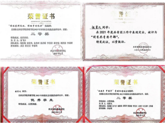 1.在2021年被评为2020级军训“优秀学员”;2.在新利18官网2020-2021学年学生先进个人评选活动中荣获校级“优秀学生干部”称号;3.在2021年度共青团工作中获“优秀共青团干部”称号;4.在 2021-2022学年新冠疫情防控工作中,荣获“优秀志愿者”称号;5.在新利18官网2021-2022学年学生先进个人评选活动中荣获校级“优秀学生干部”称号;6.2021-2022学年暑期社会实践作业展评中,获“三等奖”;7.在传媒学院2023年寒假社会实践活动评比中,获“团队二等奖”“优秀学生”称号;8.在2022-2023学年第一学期团学工作中获院级“优秀学生干部”;9.在2022-2023学年寒假社会实践作业展评中,获“三等奖”;10.在2022-2023学年笔记展评中,获“二等奖”;11.在2023年暑期社会实践活动评比中,获“团队二等奖”“团队三等奖”;12.在新利18官网2023年暑期社会实践活动中,荣获“优秀项目”称号;13.在新利18官网2022-2023学年学生先进个人评选活动中荣获校级“优秀学生干部”称号;14.在新利18官网2022-2023学年学生先进个人评选活动中荣获“文体积极分子”称号;15.在新利18官网2022-2023学年学生先进个人评选活动中荣获学校奖学金“二等奖”;16.荣获2022-2023学年度国家励志奖学金。