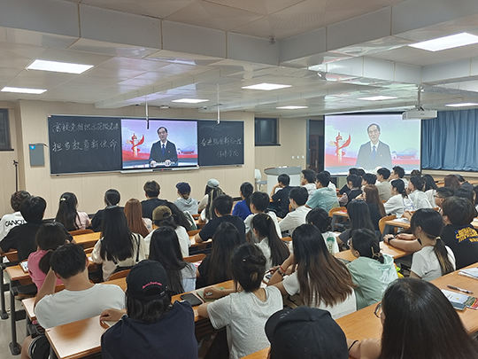 为庆祝新中国成立75周年,弘扬伟大建党精神,贯彻党的二十届三中全会精神和新时代教育强国战略目标,号召全体师生党员担当教育新使命,奋进强国新征程。9月4日,传媒学院在1208教室组织全体党员收看高校党组织微党课。