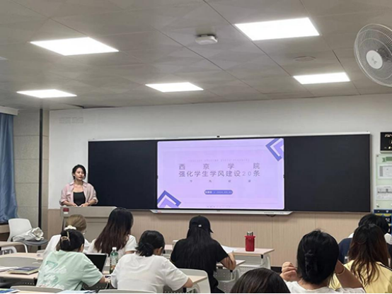 学校校领导在今年秋季开学全体教职工大会上,就全面贯彻落实《学风建设20条》作出了明确说明和阐释,要求全体师生贯彻落实,全面提升学校学风建设,为加强教育教学和人才培养质量提供内生动力,为本科教育教学审核评估提供坚实保障。开学以来,学院领导高度重视,及时召开全院教职工大会、学生工作专题会议、教研室会议、班主任会议等,深入学习贯彻领会《学风建设20条》文件精神实质和内容要义,就如何落实落地进行了讨论,并就今后如何全面贯彻执行进行了安排部署,统一了思想认识,明确了各科室、各职责的目标任务,为后续强化学风建设成果成效奠定了坚实的基础。