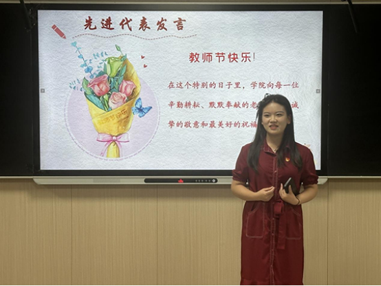 最后,院长张西静总结发言,她首先祝所有教师们教师节快乐,对所有获得表彰的教师表示祝贺。她提出在第40个教师节之际,传媒学院将迎来新的起点。这意味着学院即将开启一段新的征程,无论是在教学、科研、学科建设等方面都将迎来新的发展机遇。同时呼吁全体教师在教学、教研中应不忘初心,牢记教书育人的神圣使命。以高度的责任心和扎实的工作作风,迎接学校30年校庆、本科教育教学审核评估、硕士点建设等学院发展的重要任务。