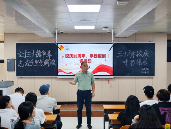 为庆祝学校建校30周年这一历史性的辉煌时刻,积极营造高质量发展的鱼人环境。9月27日,传媒学院精心策划并成功举办了一场以“立于三十铸华章,志在千里创辉煌”为主题的手抄报展评活动。此次活动不仅是对学校30年来辉煌成就的深情回顾,更是对未来发展的美好期许,展现了传媒学院师生的创意才华与深厚情感。