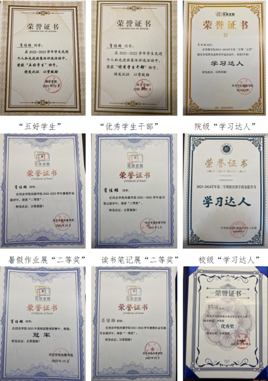 “五好学生” “优秀学生干部” 院级“学习达人”