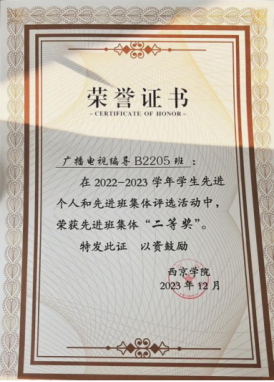 3.2023年作为班委带领班级在2022-2023年度为班级获得‘先进班级体二等奖’