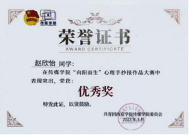 4.2023参加“向阳而生”手抄版大赛获得优秀奖。
