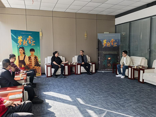 李政一行参观了公司的影院、编辑制作室等工作场所,深入了解了公司创立以来的作品创作和获奖情况,并与西安梦想流坊影视文化传媒有限公司总经理寇淼等进行了座谈。公司总经理寇淼说明了影视行业的发展现状,并指出创意策划能力、组织协调能力培养在影视创作行业的重要性。王斌介绍了广播电视编导专业的实践教学、专业发展特色等情况,并指出了短剧的市场需求和创作方向。王竞熠老师围绕剧本创作课程教学,结合指导学生参加北京大学生电影节获奖情况进行了说明。