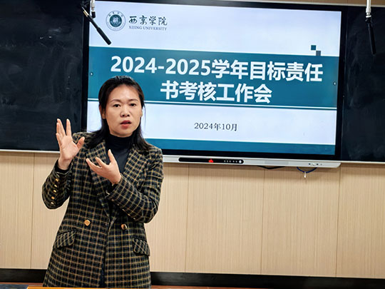 2024年10月31日,传媒学院在 1229多媒体教室举办了2024-2025学年目标责任书考核工作会。院长张西静、副院长李金山、李政以及全体教师参加本次会议,会议由教务科科长朱先雷主持。