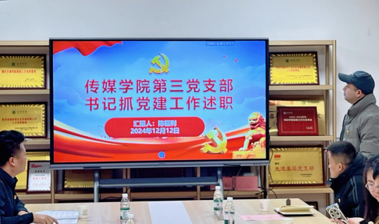 为深入落实校党委工作总体要求,加强党的基层组织建设,提升党支部书记党建工作能力,推动学院党建工作再上新台阶。12月12日下午,传媒学院党委在7-208党员活动室举行2024年度党支部书记抓党建工作述职会议。