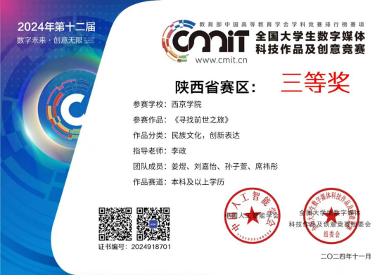 4.2024年第十二届全国大学生数字媒体科技作品及创意竞赛“陕西省三等奖”