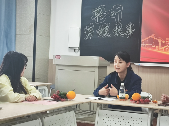 在交流互动环节,现场气氛愈发热烈。学生代表们结合自身在班级管理、提升班级凝聚力等方面的困惑,同时紧密联系我校“热爱、做透、准确、创新”的“匠心精神”,踊跃向肖春女士提问。面对同学们的问题,肖春女士耐心倾听,结合自身丰富的工作经验和人生阅历,一一给予了细致且富有建设性的解答。她的回答不仅为同学们提供了实际可行的解决思路,更让大家深刻感受到了劳模身上所蕴含的智慧与担当。
