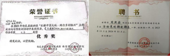 2023年6月,荣获采访与写作实训活动文字类型“优秀作品”奖项;