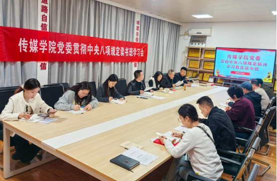 按照学校《关于深入贯彻中央八项规定精神学习教育实施方案》,为进一步深化学习教育,强化政治纪律、组织纪律、廉洁纪律、工作纪律,切实转变工作作风,不断推动学习教育走深走实。4月3日,传媒学院党委在7-208会议室举行深入贯彻中央八项规定精神学习教育读书班暨党委理论学习中心组学习会。会议由传媒学院党委书记张西静主持,学院党委委员、各支部委员及科以上党员领导干部参加。