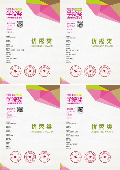 5.2024年中国大学生广告艺术节学院奖秋季赛优秀奖4项、入围奖6项