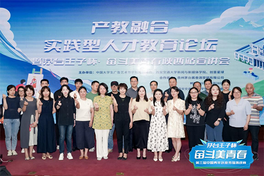 5月28日,由贵州茅台酱香酒营销有限公司和中国大学生广告艺术节学院奖联合主办的产教融合实践型人才教育论坛暨茅台王子杯·奋斗美青春陕西站宣讲会在西安交通大学举行,西安交通大学党委副书记王欢等校方领导、贵州茅台酱香酒营销有限公司党委副书记付月秋等企业代表及实战派策划专家张默闻等嘉宾出席,来自西安交通大学等10余所高校的近500名师生参与活动。我院教师韦艺璠,辅导员于明珠带队网络与新媒体2402班及广告基地部分学生代表出席本次活动。
