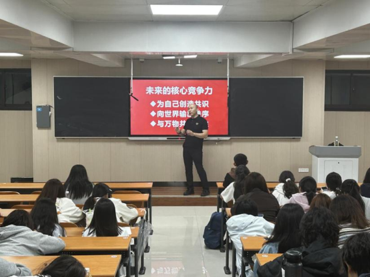 针对个人发展,邱悦建议新生尽快找到“生态位”,以 “热爱”为动力持续输出,通过“知识储备+创意+人性洞察”培养“网感”,借助AI实现“抄—超—钞”的IP变现路径“传播是普通人逆袭最好的机会”,他的总结引发全场掌声,为新生指明学习与成长方向。