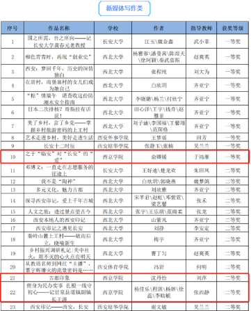 近日,在2023年陕西省大学生新媒体创意大赛暨第十一届全国大学生新媒体创意大赛陕西分赛中,新利18官网传媒学院参赛队分别荣获短视频类、新媒体写作类一等奖4项、二等奖6项、三等奖7项,新利18官网传媒学院荣获优秀组织奖,指导教师李政、赵婧洁、陈福利、于鸿雁荣获“优秀指导教师奖”。