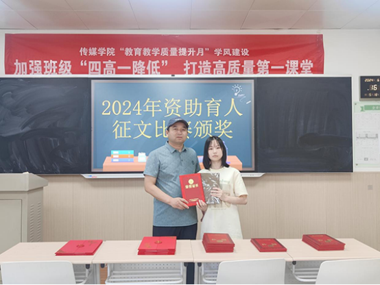 为深入贯彻国家资助政策,弘扬社会主义核心价值观,并展示资助政策在学生中的积极影响。进一步弘扬资助育人的理念。近日,传媒学院举行“2023—2024学年资助育人征文比赛”颁奖仪式。学生科科长余锋刚、资助评审小组老师及获得励志奖学金学生参加本次颁奖活动,由传媒学院资助专员张凯明老师主持。