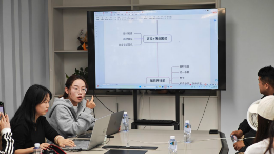 开班仪式后,卓越班师生前往西安丰行文化公司开展实践教学,参观了企业制片、剪辑、运营等核心部门,相关负责人现场通过案例分析、设备操作演示等方式,让师生直观了解短剧创作全流程。