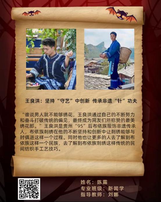 用杂志排版的方式来将深度报道更加形象具体地排版设计出来,这样可以多角度展示布依族刺绣文化,使人们更全面地了解和欣赏。多视角多角度地呈现出通过讲述贵州“95”后布依族小伙王良洪依靠自己的不断努力奋斗成为布依族服饰非物质文化遗产继承人的故事。王良洪在成为非物质文化继承人的道路上并不是一帆风顺的,而是充满挫折和一系列的困难挑战的。他通过自己的不断努力去奋斗战胜这些困难和挑战,最终取得成功的故事。同时。想通过王良洪以守艺的故事来告诉我们当代年轻人在不管是遇到什么样的困难和挑战的时候首先想的不是放弃觉得自己不可能完成、消极躲避的心理,而是要学会敢于去战胜和挑战这些困难和挫折的勇气。正如布依族刺绣的精神理念一样:“绣眼中所见,绣心中所想。心里有光明,花才会盛开。”