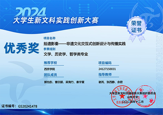 国家优秀奖1项:学生:郭怡彤、曹欣颖、梁海竹、秦宇萱 指导教师:谢芮、张西静、余君