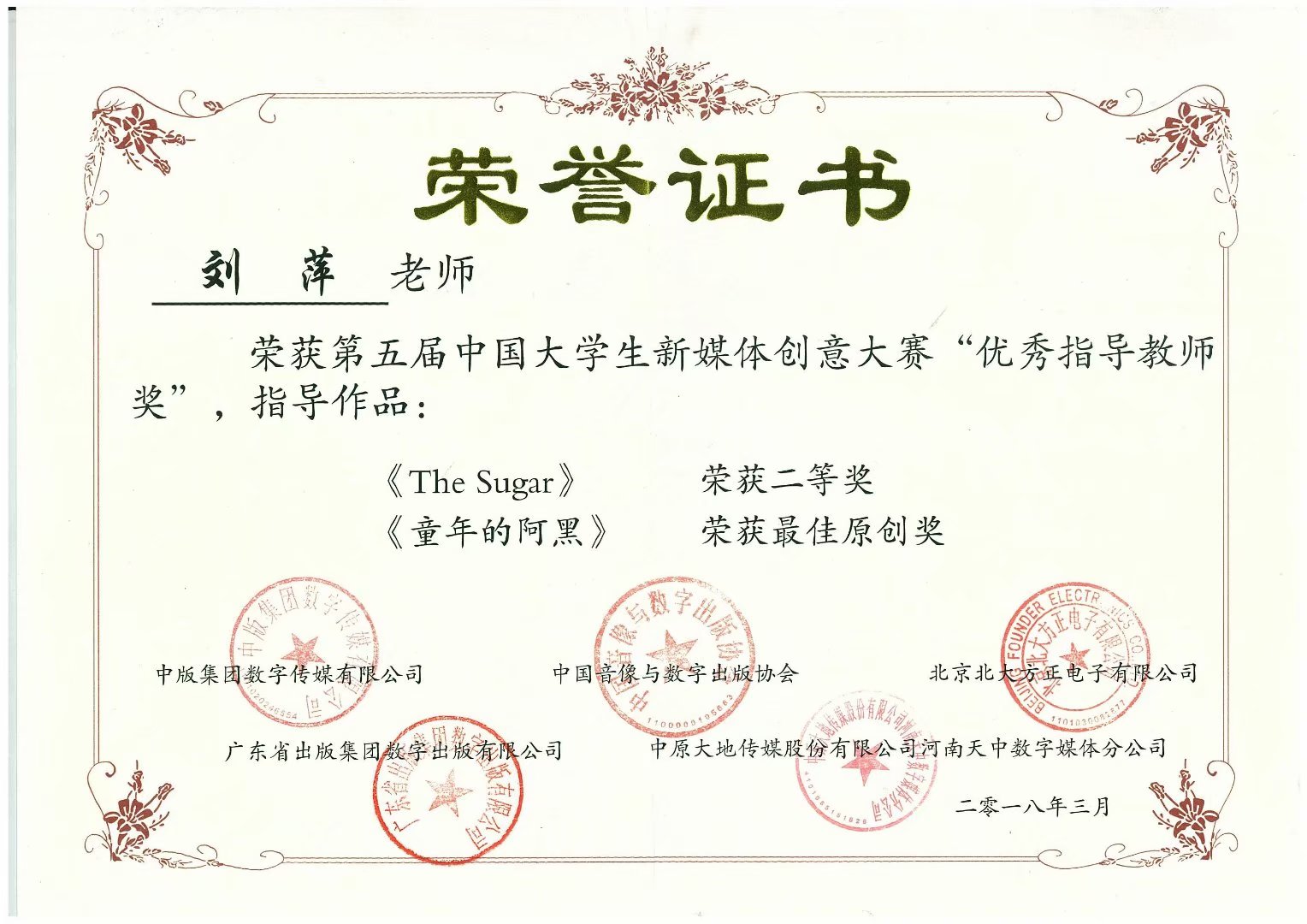 我院教师荣获第五届中国大学生新媒体创意大赛“优秀指导教师奖”
