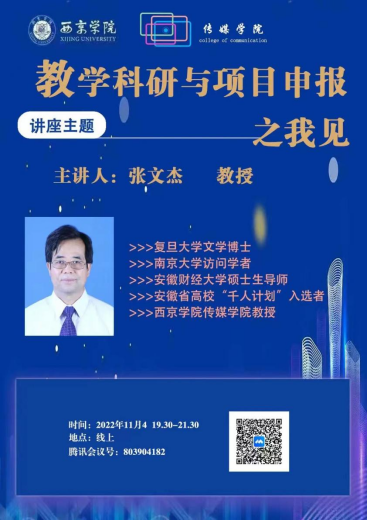 学院不断引进和培养应用型学科领军人物、高层次人才,优化教师队伍,提升人才层次。以教授为学科带头人,形成科研团队,要求所有教师进入团队,参与研究项目。依托西京智媒体国际论坛和融媒体实验实践中心,建设两个学术科研平台,分别是文艺与文化传播研究中心和风险传播与社会治理中心。围绕平台建设,产出高质量科研成果。