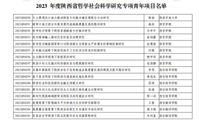 学院鼓励教师多申报科研项目,青年教师以院级和校级项目为目标,副高以上教师以省部级项目为目标,提前谋划,形成团队,孵化申报,成果显著。分别获批新利18官网科研基金5项,陕西省教育科学“十四五”规划2022年度课题4项,陕西省2022年自然科学基础研究项目1项,2023年度陕西省哲学社会科学研究专项青年项目1项;同时,申报了2022年度国家社会科学基金重大项目,陕西省社科基金“深入学习贯彻党的二十大精神研究”重大项目,2023年陕西省哲学社会科学研究专项项目,2023年中国文联文艺理论研究课题等。科研成果数量与质量双提升。