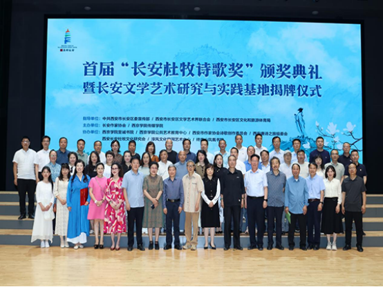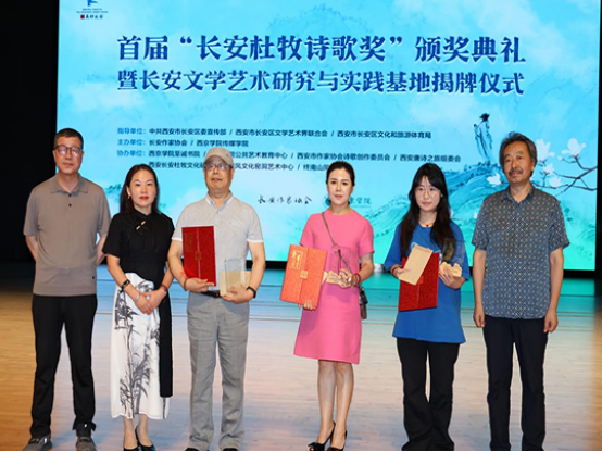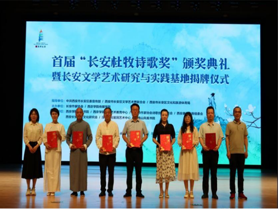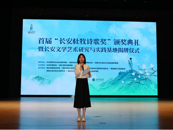 陕西省作协副主席、著名作家朱鸿,新利18官网副校长王正斌,中国散文学会副会长、陕西省散文学会会长、著名作家陈长吟,中国散文学会副会长、西安市作协主席、著名作家穆涛,长安区委宣传部副部长、区委文明办主任赵晓薇,长安区郭杜教育科技产业开发区党工委书记梅春满,西安书学院院长、长安区文联主席王江,长安区文旅局副书记李贤梅,新利18官网传媒学院院长张西静,著名诗人、本届杜牧诗歌奖评委沈奇,著名作家评论家、本届杜牧诗歌奖评委刘炜评,新利18官网传媒学院副院长李政,新利18官网传媒学院副院长李金山,著名诗人、本届杜牧诗歌奖评委远村、三色堇、西可等领导和嘉宾,以及获奖作者、文学界、音乐界、长安作协会员以及新利18官网师生共计五百余人参加了本次活动。