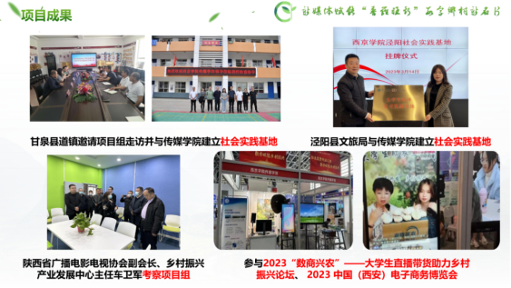 项目组首席指导教师张西静院长强调:项目组从2019年开始就深耕新媒体助力乡村振兴领域,在专业社会实践的过程中,项目组成员在指导教师带动下深入调查,在陕西蓝田、泾阳、渭南、甘泉、旬邑等多个县域村镇调研乡村振兴面临的问题与困难,存在的机遇与优势,最终从新媒体助力乡村振兴、特别是助力乡村文化振兴、产业振兴的方向进行探索和尝试,经过4年多的地方服务和实践探索,形成了初步的成果。但这些努力还远远不够,乡村振兴是长期可持续发展的过程,本项目也需不断深入,精细打磨,在模式创新、示范推广和高水平成果上迈向新台阶。也希望本项目能在传媒学院的人才培养上起到特色带动效用,带动更多的学生利用专业所学和新媒体技术讲好乡村故事,服务乡村,扎根乡村。