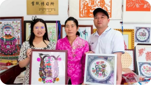 团队成员又来到旬邑富村剪纸之乡,专访了贴花剪纸非遗传承人马海霞老师。参观各式各样色彩鲜明的剪纸,当看到摆放在屋子中的各种作品和获奖证书,更能直观感受到旬邑剪纸的艺术文化价值有多么的优秀!旬邑剪纸不会满足于此、止步于此,他们不止在剪纸内容上会与时俱进,在剪纸的手法上也会不断探索、不断创新、不断进步。