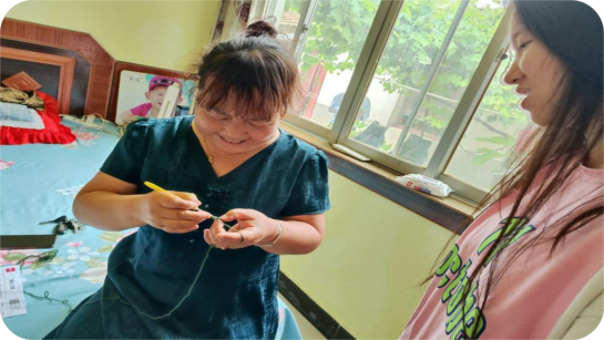 实践团队来到村民家,拜访了传统手工编织者,关于编织的时长,编织物品以及相关信息都进行了询问,手工编制者也为我们进行了耐心的一一解答。成员们从他们口中得到,手工艺生产能为从业人员带来获得感和幸福感。在生产过程中,它不仅能满足人们的物质需求,也满足了人们的精神需求。传统手工艺品凝聚着当地人民代代相传的智慧,寄托着人们对美好生活的向往,也体现了人们的“乡土情怀”,极大程度满足了人们的美好精神需求。手工艺的发展对当地文化的复兴具有独特意义。实践团体验了手工业的发展与生产,感受到了浓浓的地域文化,在这里,村民们的劳动结晶是他们最好的宣传语言。