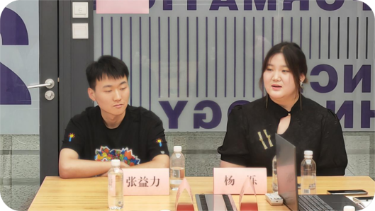 2020级网络与新媒体专业张益力、2021级广播电视编导专业张烁分别进行了实习经验分享。张益力表示,自己非常珍惜这次实习机会,要积极转变心态和身份,将理论深耕于实践中,提高自身专业素养。张烁认为,在学校通过非线性编辑等专业课程的学习和工作室的实践,充分掌握了影视拍摄和制作的方法,让自己实习工作中得心应手。