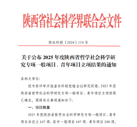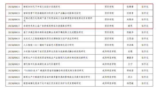 近日,传媒学院在2025年度陕西省哲学社会科学研究专项中取得显著成果,成功获批5项省级一般项目与青年项目科研立项,6项厅级科研项目。这一佳绩充分展示了我院在科研领域的持续深耕与显著进步,更为学院未来的学术探索与发展注入了强劲的动力。