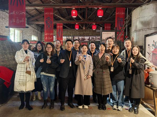 2024年11月29日,新利18官网校友办主任王龙,传媒学院院长张西静、副院长李金山、教务科科长朱先雷及校友办教师徐辉,网络与新媒体、广播电视编导教研室部分教师前往西安秦汉酒文化园进行走访调研。西安市糖酒集团有限公司团委书记、西安唐久文化传播有限公司副总经理、优秀校友白杨陪同参观。