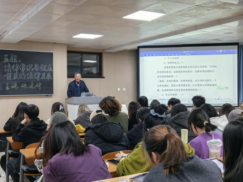 在讲座中,姚述仲老师首先讲解了法律的定义、违法的概念以及遵守法律法规的重要性。他强调,法律是国家立法机构制定的公民行为规则,具有强制性,每一个公民都有义务遵守。同时,他也提醒大家,在日常生活中要时刻注意自己的言行举止,避免触犯法律。